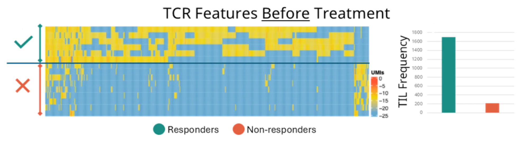 - Responders had dramatically high levels of tumor-infiltrating lymphocytes (TILs) in these specific clusters.